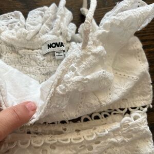 Worn once! Fashion Nova Kids size 6 two-piece white crop and skirt set