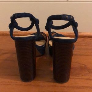 Navy platform heel with ankle strap. Soft leather/suede. Very comfortable due to platform front!
