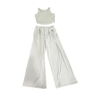 This adorable sage green set includes a comfortable pair of wide leg pants and a stylish crop top. It's perfect for lounging at home, running errands, or a casual day out. The set is in excellent condition and comes from a smoke-free home.