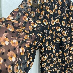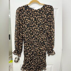 Worn once. Storia Mini Dloral Dress with Sheer Sleeves.