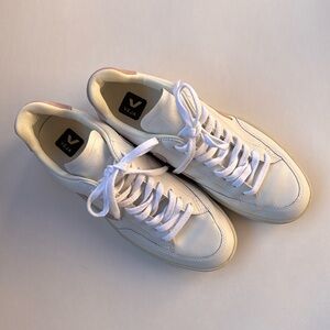 Worn once! Veja V-12 size 41 US Women’s 10 White leather and Baby pink suede
