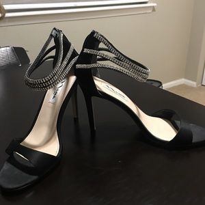 Size 8 black and faux diamond ankle strap heels. Worn one time for wedding