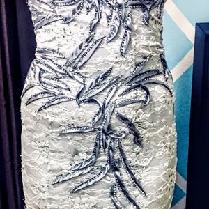 Beautiful custom prom dress silver and grey, hand beading, floor length, strapless gown. Size 4