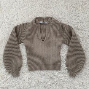 Worn one Alexander Wang ribbed beige wool cashmere blend draped neck sweater