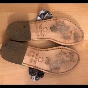 Preludio hand stitched sandals from Italy. Worn twice. Snake. Grey with tan sole US SIZE 9