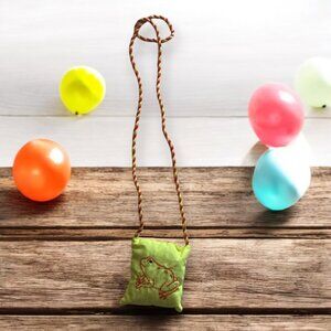 This handmade necklace is made with yarn and small cloth sacks filled with sage and aromatic desert plants, decorated with hand-embroidered figures. An accessory full of tradition and symbolism, created with love by the Seri community in Sonora, Mexico.