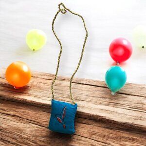 This handmade necklace is made with yarn and small cloth sacks filled with sage and aromatic desert plants, decorated with hand-embroidered figures. An accessory full of tradition and symbolism, created with love by the Seri community in Sonora, Mexico.