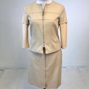 Worth Tan Zip Pencil Skirt. Features two-way zipper so you can zip from top or bottom to vary your look. Minimalist Chic. Seasonless. Mid-weight Cotton. Knee-length w zip pockets. Fab for work, everyday, daytime event. NWT