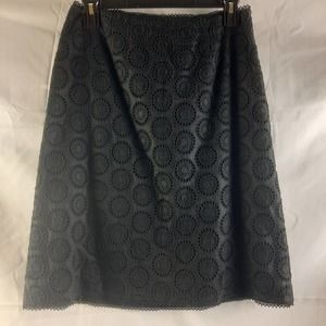 Worth 100% Linen Boho Embroidered Eyelet Circles Black A-Line knee length Skirt. Size zipper. Preowned EUC, all items have been laundered, dry cleaned, steamed and/or pressed. See all pictures as part of description.