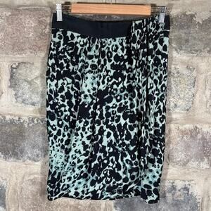 Worth 100% Silk Green & Black Animal Print Skirt Size 4 Midi Career Chic Office