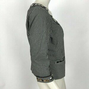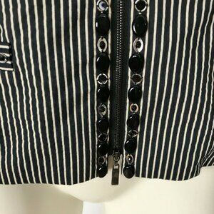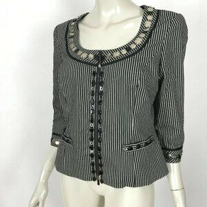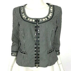 Worth Black Striped Embellished Blazer Jacket Front Zip Lined Women 8 NWOT
