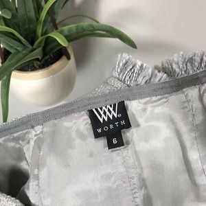 Worth Green Tweed Fringe Career Skirt Zip Hem Lined Wool Blend Womens Size 6