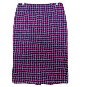 Worth Houndstooth Pink Geometric Wool Pencil Skirt 4 Academia Retro Office