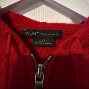 100% Italian cashmere Worth New York Track style hoodie set. All Red with white stripe detail. In excellent condition. Women’s size extra small XS. EXCEPTIONAL fabric quality. Waist 13”, measured lane flat and unstretched Inseam 34” Cheat 16”, pit to pit