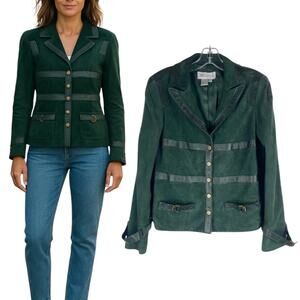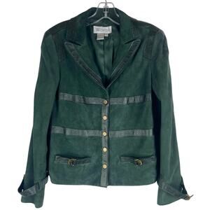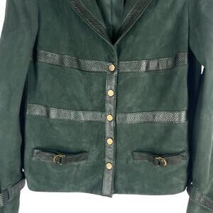 Worth NY Snake Leather Trim Suede Jacket Snap Button Dark Green Size 4