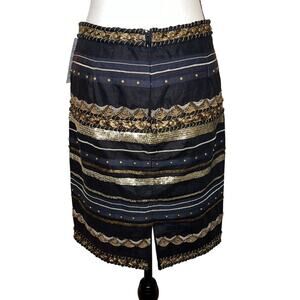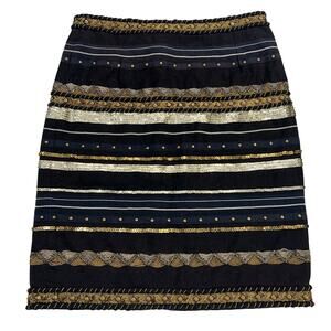 Worth New York Black Custom Maximalist Mixed Metals Beaded Artistry Skirt Size 2