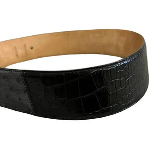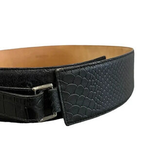 Worth New York Black Embossed Patchwork Leather Belt L