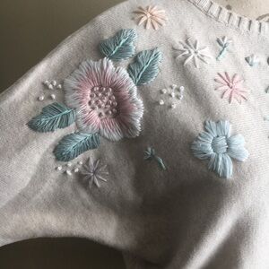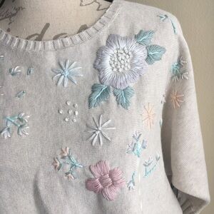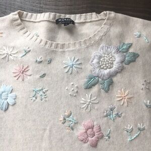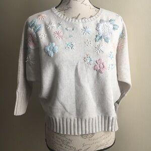 Gorgeous sweater by Worth New York brand new with tags. Embroidered floral designs pastel colors. Large arms 3/4 length