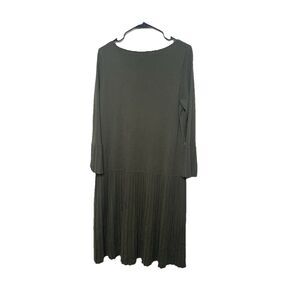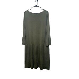 Worth New York Size L Wool Midi Dress Olive Green Knit Pleats Wool