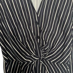 Worth New York V-Neck Striped Twist Front Woven Sheath Dress - Black & Tan - Size 6