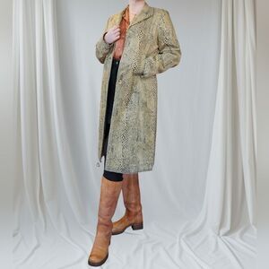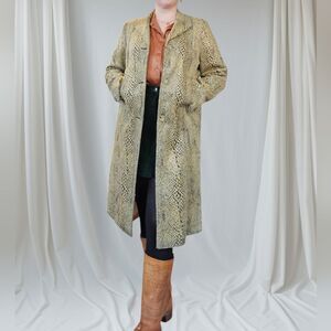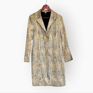 Worth New York Vintage Faux Fur Leopard Snake Print Long Line Midi Trench Coat M