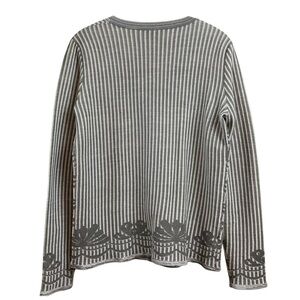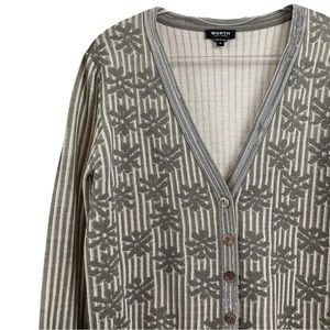 Worth New York Wool Knit Floral Striped Buttoned Cardigan Sweater Gray Ivory M