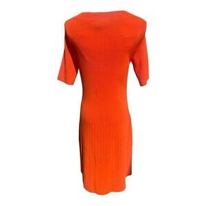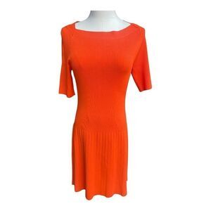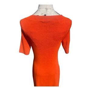 Worth NYC Orange Knit Fit and Flare Dress. Size Small. Measures 15” P2P and is 38” long from shoulder to hem. This dress is an excellent preowned condition with metal wear. No stains or flaws.