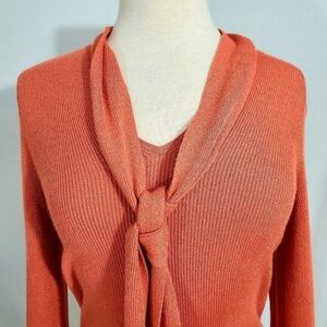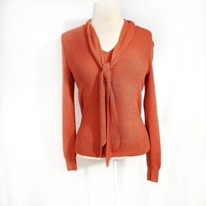 Worth Orange Shimmery Gold Neck Tie Knit Sweater