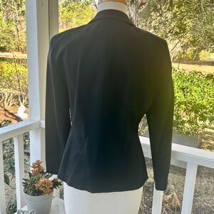Worth Petite Zip Front Black Blazer with Leather Trim