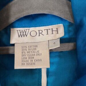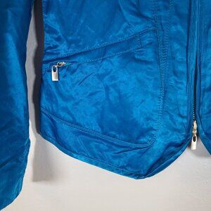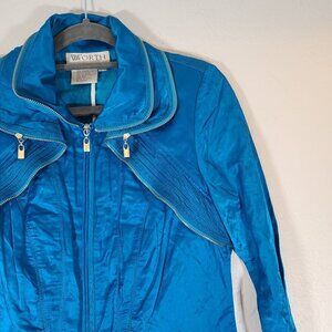 Worth Satin Feel Emerald Blue Jacket Zipper Lined Ruffle Detail Pockets Size 4