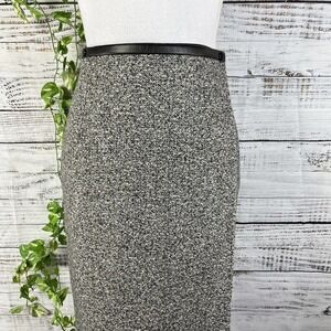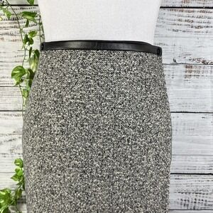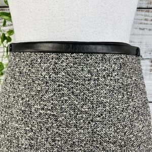 Worth Skirt size 4 Black Gray Wool Tweed Wrap Knee Faux Leather Career Modest
