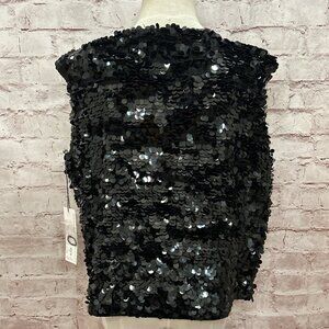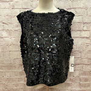 New with Tag Size XL Pullover stretch knit top with black sequins embellishment all over Sleeveless 80% silk 18% nylon 2% spandex