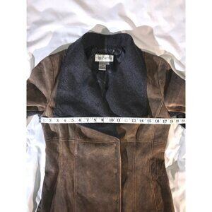 Worth Women's Brown Leather and Grey Wool Accents Core Coat