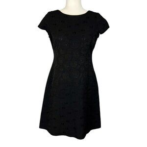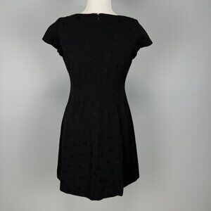 Worth Womens Petite Black Short Sleeve Fit Flare Dress Textured Circles size 4P