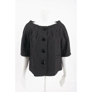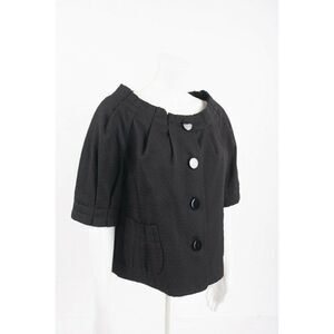 Worth Womens Textured Blazer Jacket Sz 14 Short Sleeved Black Button Front