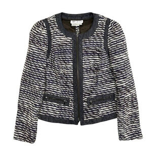 Worth Wool Tweed Denim Trim Blazer Jacket Purple White