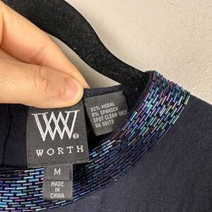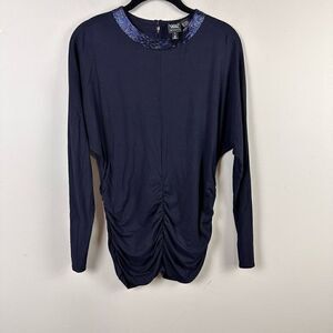 Worth beaded collar navy modal ruched bodice long sleeve top