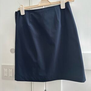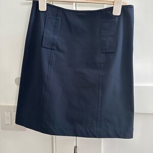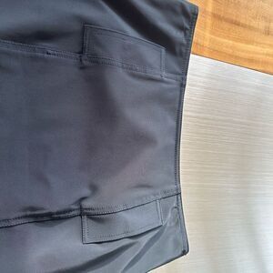 Wurth collection, black techno fabric suit skirt with front pocket and snap closure. Side zipper. The length is 20 inches, the waist is 31 inches, and the hips are 36 inches. I also have the pants and jacket listed as a suit together.