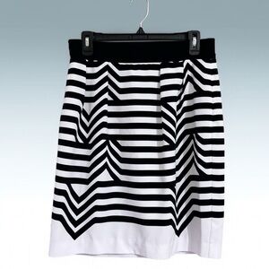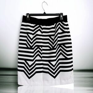 Worthington 12P Black White Striped Pencil Skirt Midi Pleated Lined