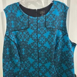 Worthington 2X Pencil Dress Teal Sleeveless Professional Lace Print Midi !
