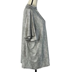 Worthington 2X-Large Top Geometric Keyhole V-Neck Flutter Sleeve Stretch