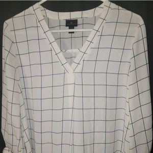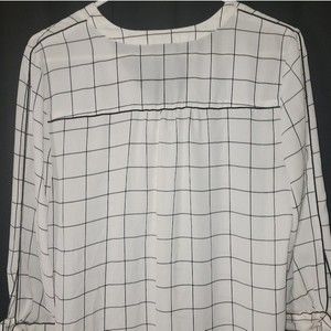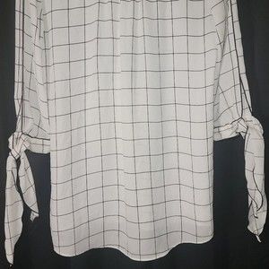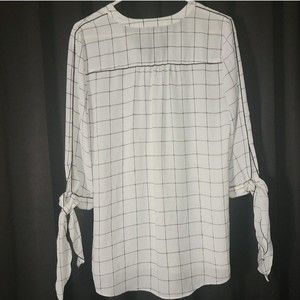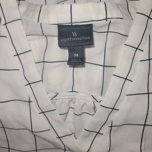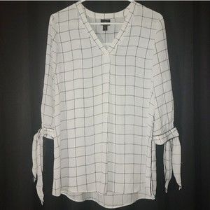 Worthington 3/4 Sleeve w Ties Medium V-Neck White Simple Stripe Polyester Sheer