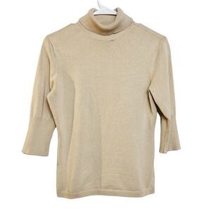 Worthington 3/4 Sleeve Turtleneck Sweater Tan Size Small
