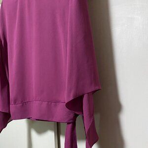 Worthington 3/4 length bell sleeve, plum blouse w/tie, size XS