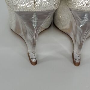 Beautiful lucite 3 1/2" wedge heals. Silver glittery. Just like new. Size 6M(B) consider making a bundle and get an even better price.