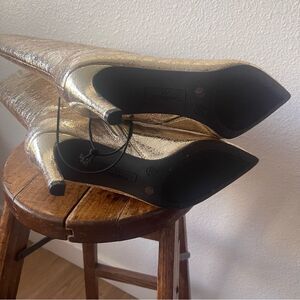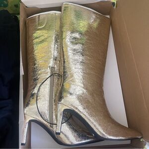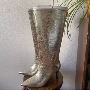 Worthington 9.5 Metallic Gold Knee High Boots Stiletto Glam Party Statement
