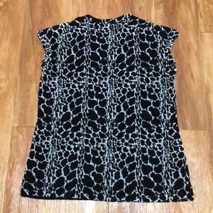 • Other information: V-neckline. Very short sleeves. Cuff and buttons for accent on the sleeves. Pleated throughout. Lined, but still mildly see-through. Lightweight and comfortable.
