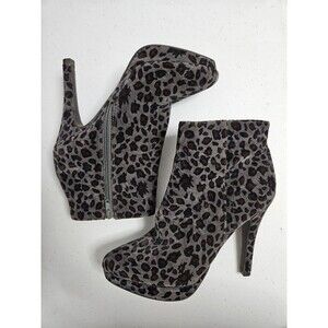 Worthington Ankle Booties Women's 7M Leopard Print Side Zip Stiletto Platforms
