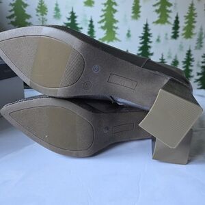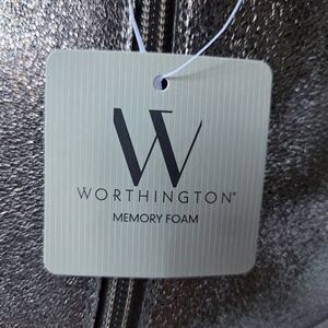 Put some sparkling glamor to your looks with this pair of Worthington women's Bannow flared heel booties. Crafted from a metallic faux leather, this pointed-toe pair has a side zip closure, a sturdy high flared heel and a memory foam insole for added comfort. Wear them with skinny jeans or a dress and tights.
