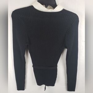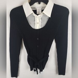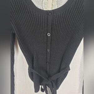 Worthington Black Button Down Sweater with Tie Sz M in Great Condition